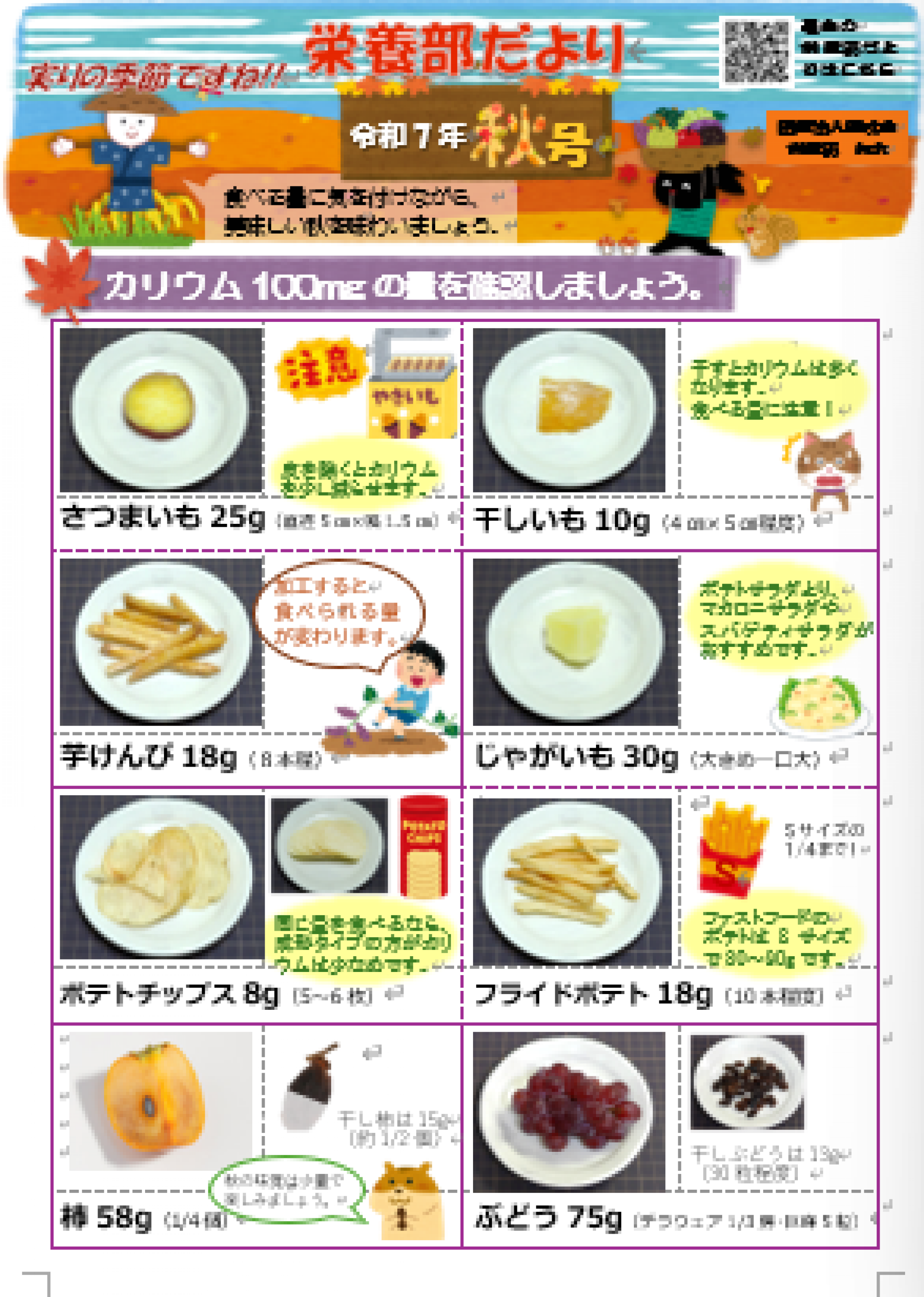 患者様配布資料として透析患者様へ栄養部だよりの配布をしています。外来で受診されている方でも、ご希望があれば受付にてお渡しさせて頂きます。栄養士へお声かけください。