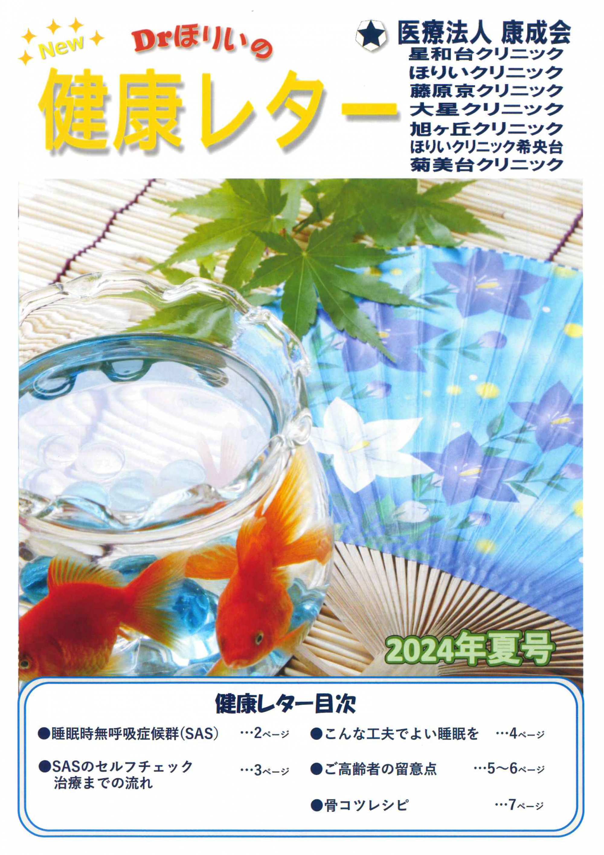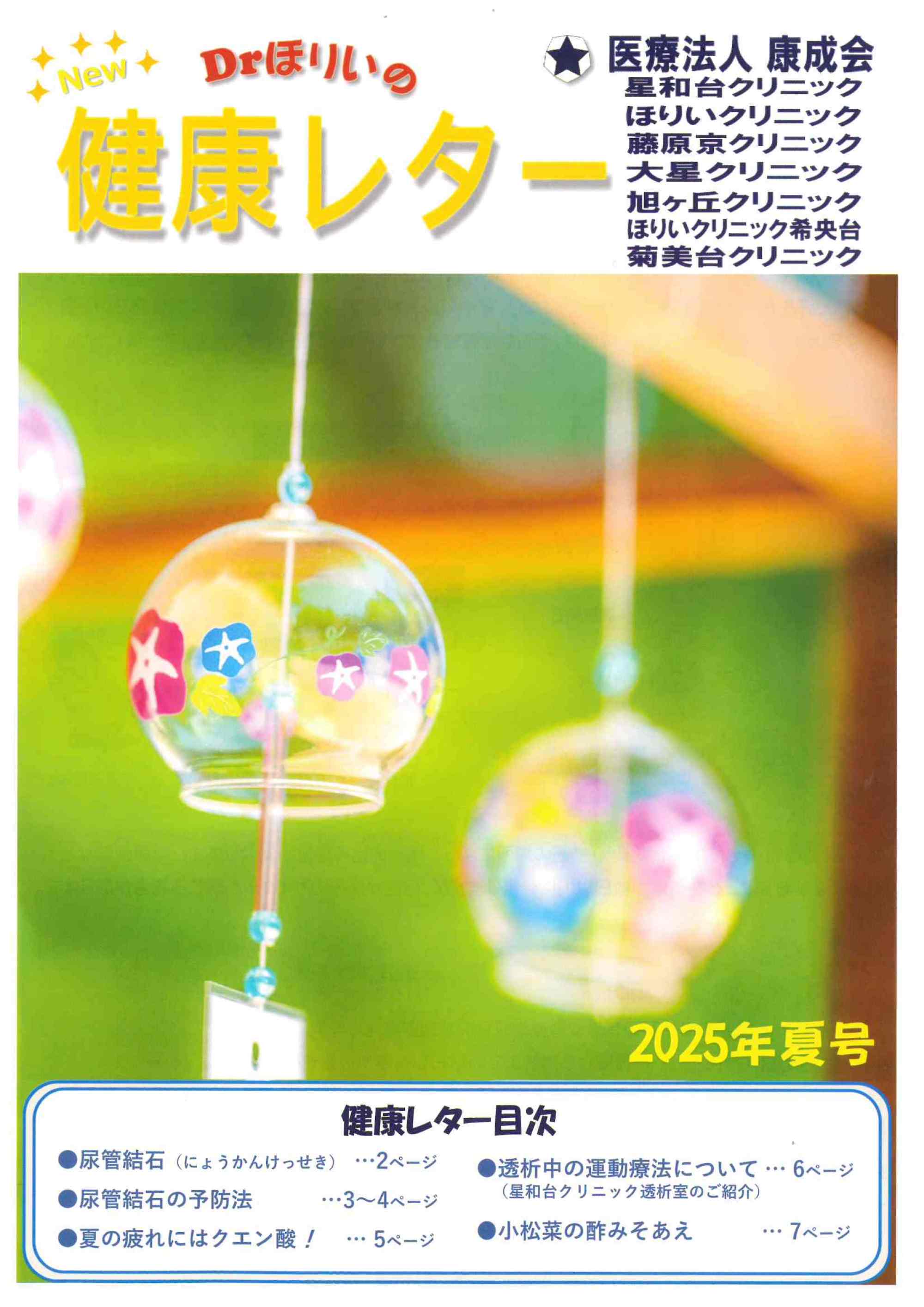 医療法人康成会では年に2回、季刊誌「健康レター」を発行しております。ご希望の方には配布しておりますので、クリニック受診時に受付職員までお声掛け下さい。