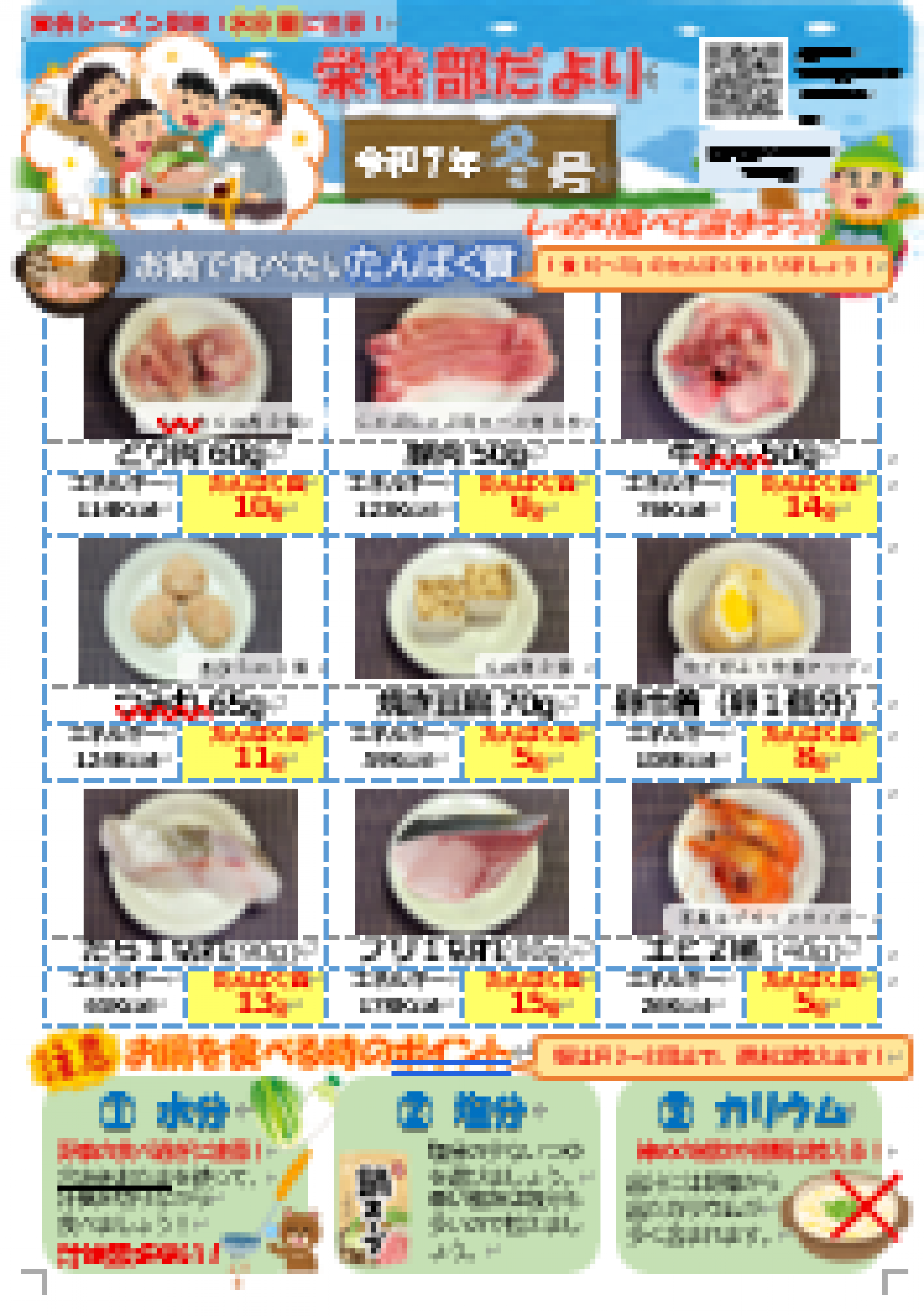 患者様配布資料として透析患者様へ栄養部だよりの配布をしています。 外来で受診されている方でも、ご希望があれば受付にてお渡しさせて頂きます。 栄養士へお声かけください。
