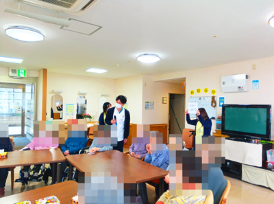 待ちに待ったお楽しみ会が開催されました。今回は初の試みでジェスチャーゲームをしました。職員の動きの“面白い動き!?”で笑いが!!意外にジェスチャーが上手く、すぐに答えられる方も多くおられました。みんなで合唱もしました。最後はお待ちかねの“おしるこ”をおやつにいただきました。また楽しい行事を企画して行きたいと思います。