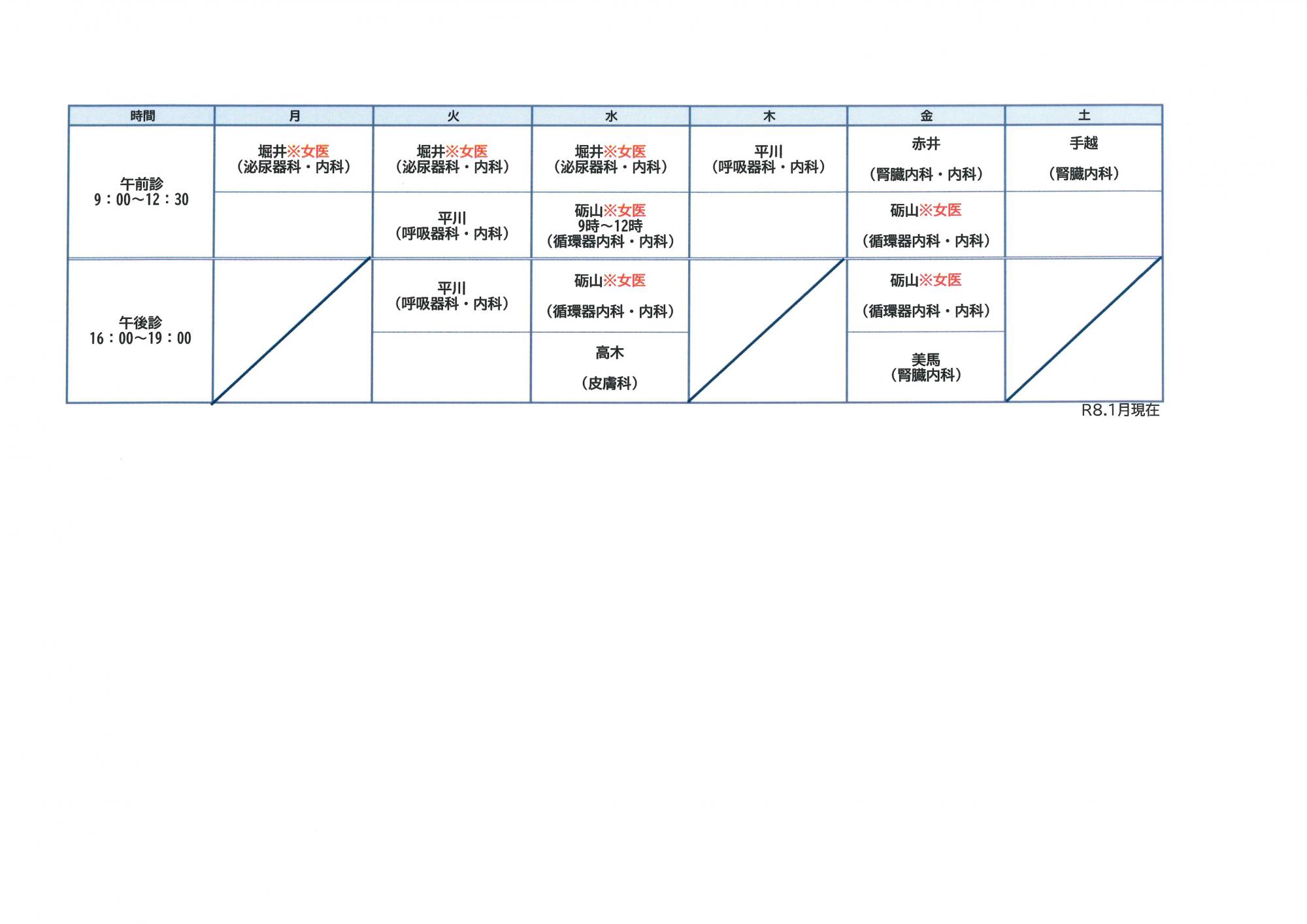 令和8年1月より外来の診察開始時間が下記の通り変更致します。